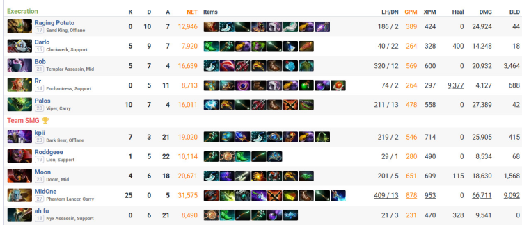 Цей видатний подвиг стався під час матчу між командами SMG та Execration у 7 сезоні BTS Pro Series у серпні 2021 року. Граючи за Phantom Lancer, MidOne здійснив дев'ять вбивств поспіль, коли його команда тиснула Execration глибоко в їхньому фонтані, а гра вже майже закінчилася. Він завершив матч з бездоганним 25/0/5 KDA.