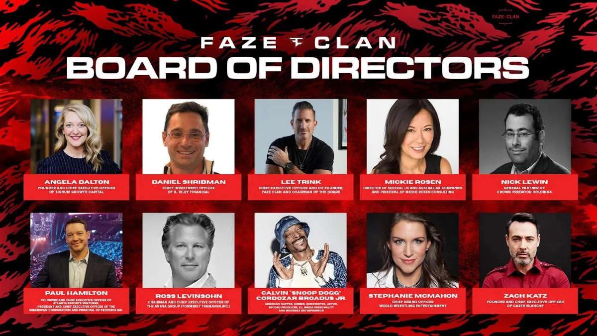 The North American esports organization FaZe Clan is introducing its new Board of Directors, which will begin its work after the club's transition to a public company. A total of ten directors were named, including Lee Trink, CEO and co-founder of FaZe Clan, Stephanie McMahon, Chief Brand Officer of World Wrestling Entertainment (WWE), and rapper Snoop Dogg.
