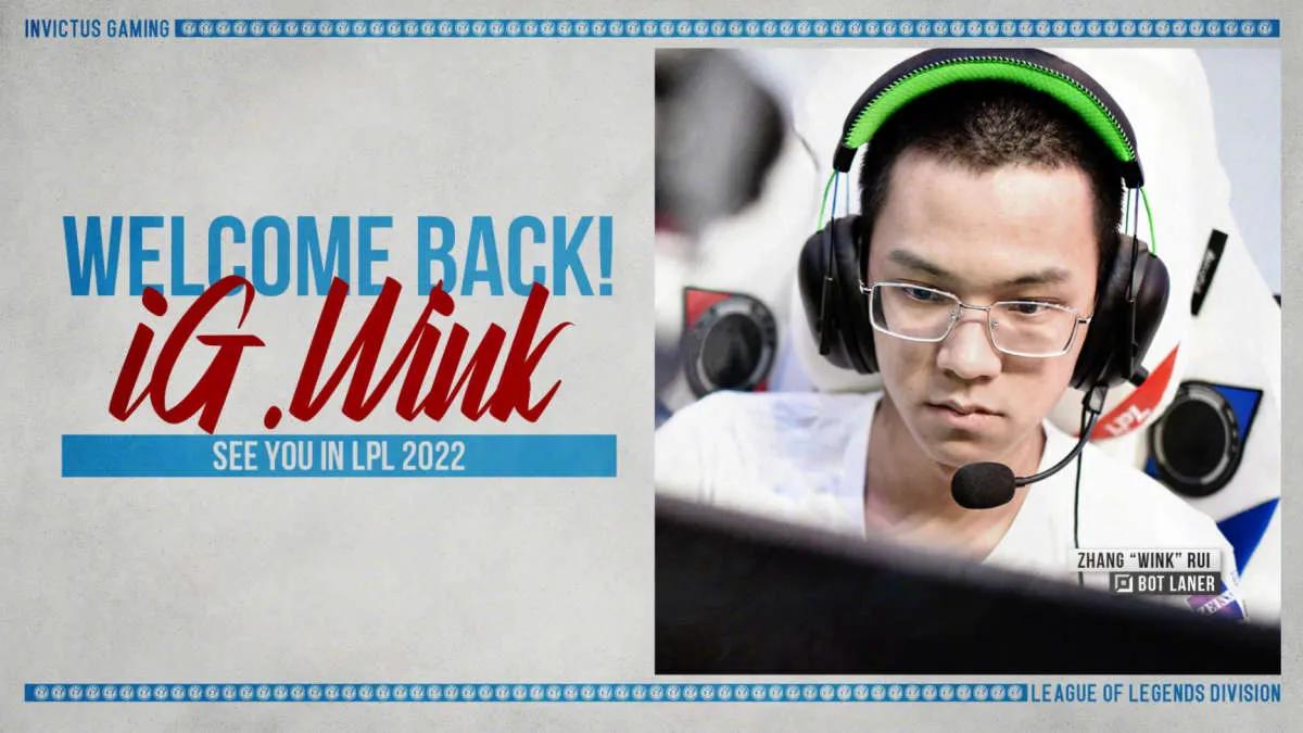The well-known Chinese esports club Invictus Gaming announced on its Twitter account and other media that it has signed a contract with Zheng 'Wink' Rui, a bot lane player. Previously, he was already listed as part of Invictus Gaming, however, he left the location of the club on December 14, 2021. From that moment on, he was in the eSports as the main agent. Two months later, the management of Invictus Gaming decided to sign a contract with Wink.