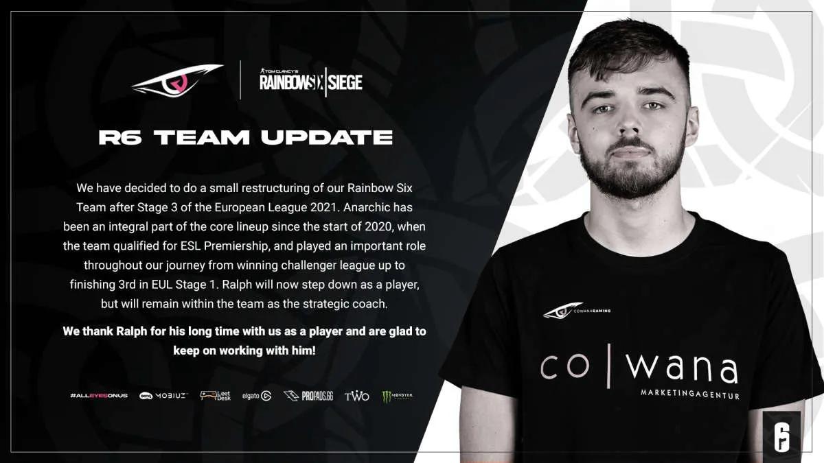 Veteran cowana Gaming Anarchic will change his position. The former player will try himself in the role of a strategic coach.